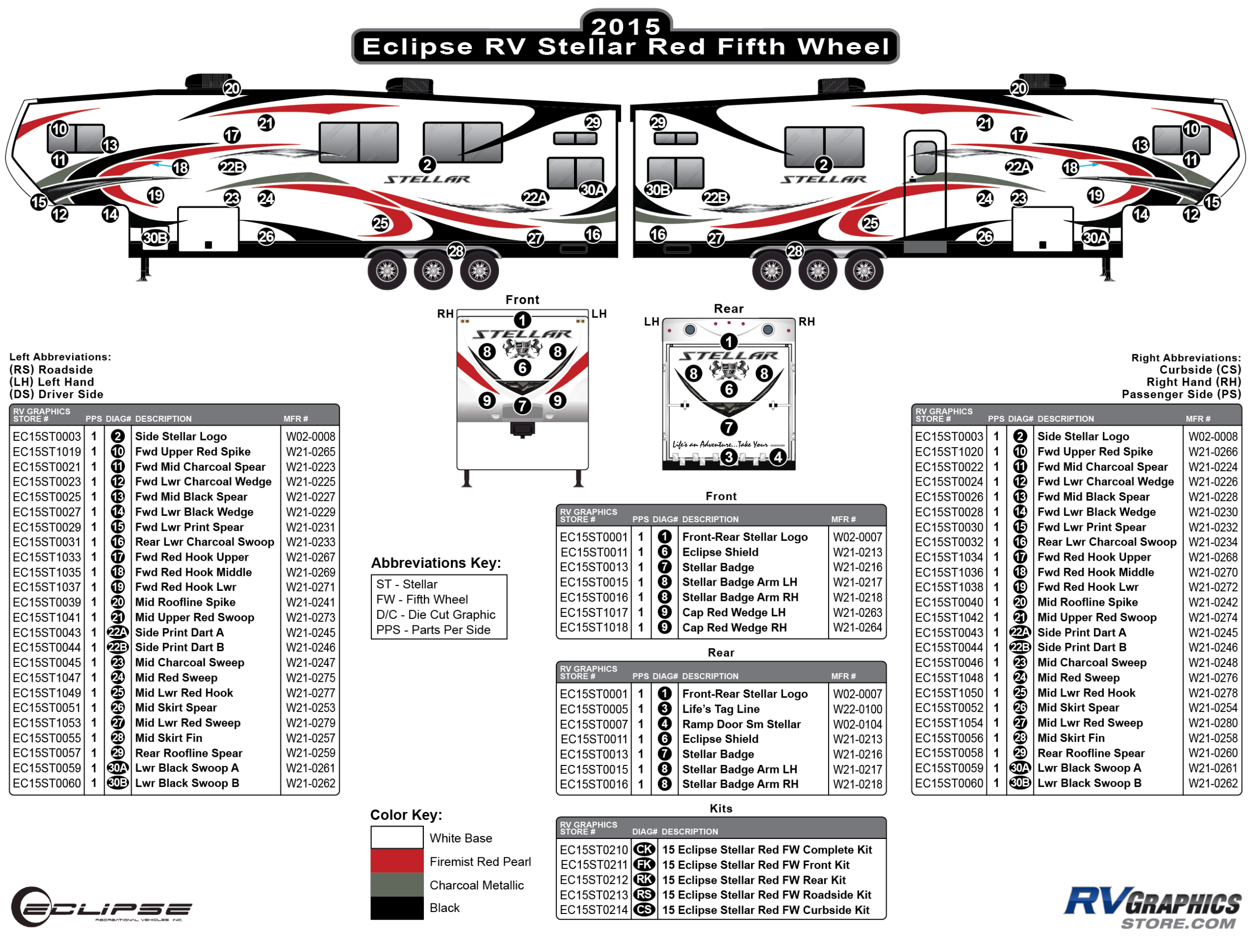 24 Piece 2015 Stellar Fifth Wheel Red Version Curbside Graphics Kit