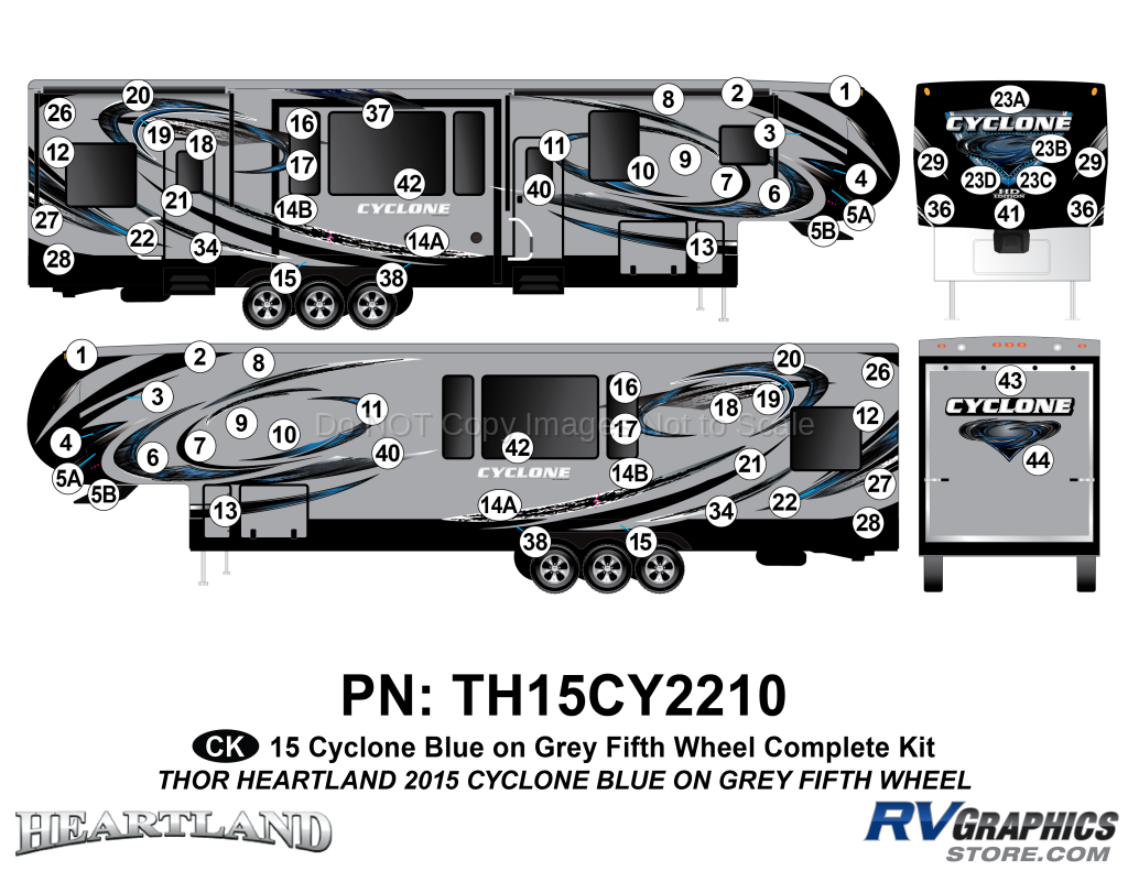 74 Piece 2014 Cyclone FW Complete Graphics Kit Blue Gray Version