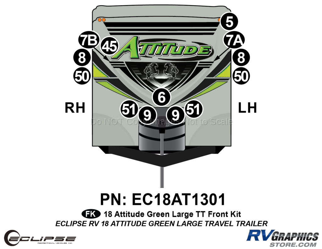 13 Piece 2018 Attitude Lg Travel Trailer Green Front Graphics Kit