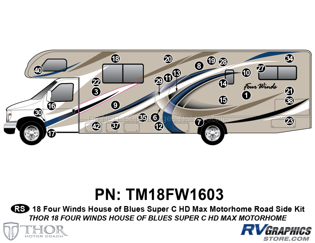 33 Piece 2018 Four Winds MH Blue on Tan Body Roadside Graphics Kit