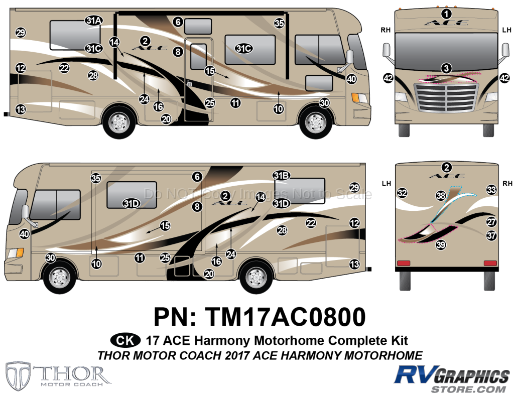 57 Piece 2017 ACE Motorhome Harmony (Gold) Complete Graphics Kit