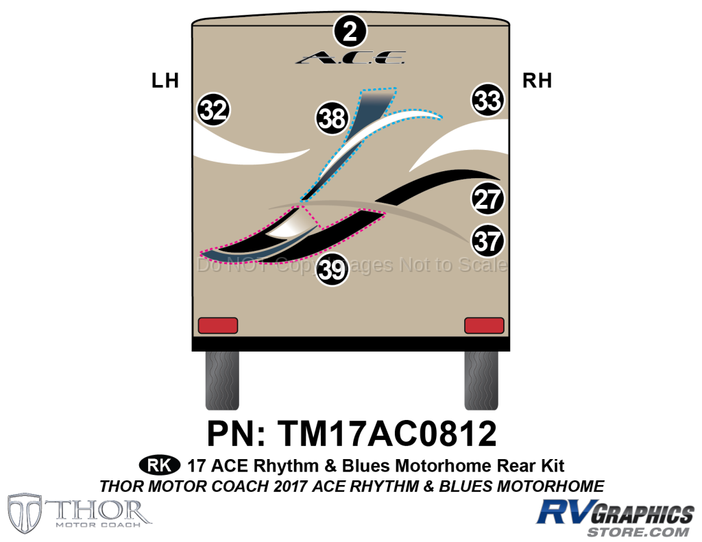 7 Piece 2017 ACE Motorhome Rhythm & Blues (Blue) Rear Graphics Kit