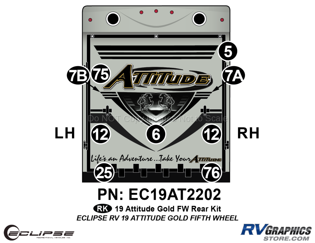 9 Piece 2019 Attitude Fifth Wheel Gold Rear Graphics Kit