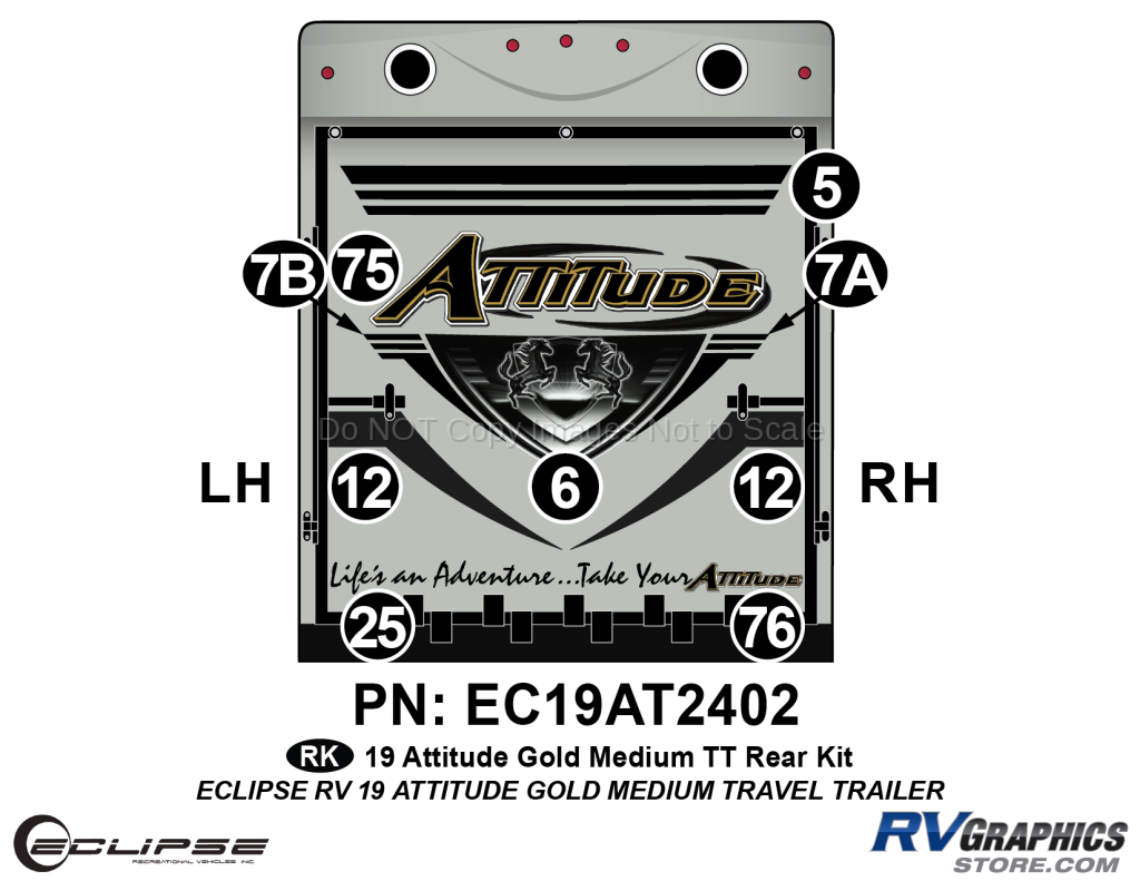 9 Piece 2019 Attitude Medium Travel Trailer Gold Rear Graphics Kit