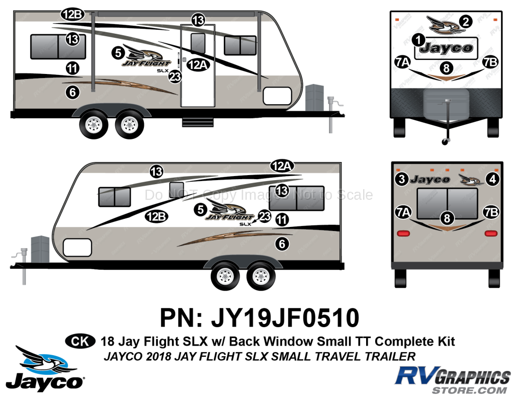 26 Piece 2018 Jay Flight SLX Sm Travel Trailer-WITH Rear Window Complete Graphics Kit