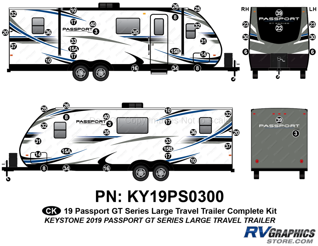 54 Piece 2019 Passport GT Large Travel Trailer Complete Graphics Kit