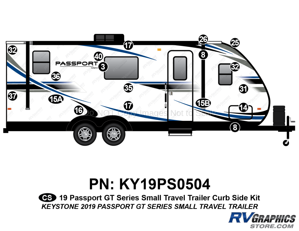 17 Piece 2019 Passport GT Small Travel Trailer Curbside Graphics Kit