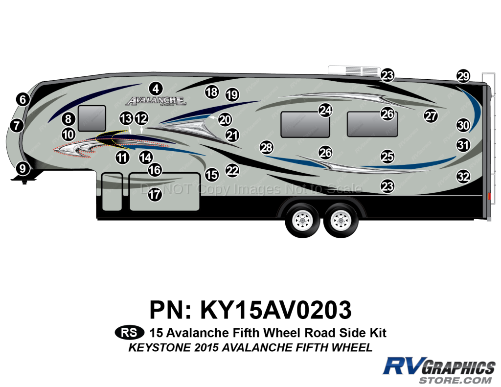 30 Piece 2015 Avalanche Fifth Wheel Roadside Graphics Kit