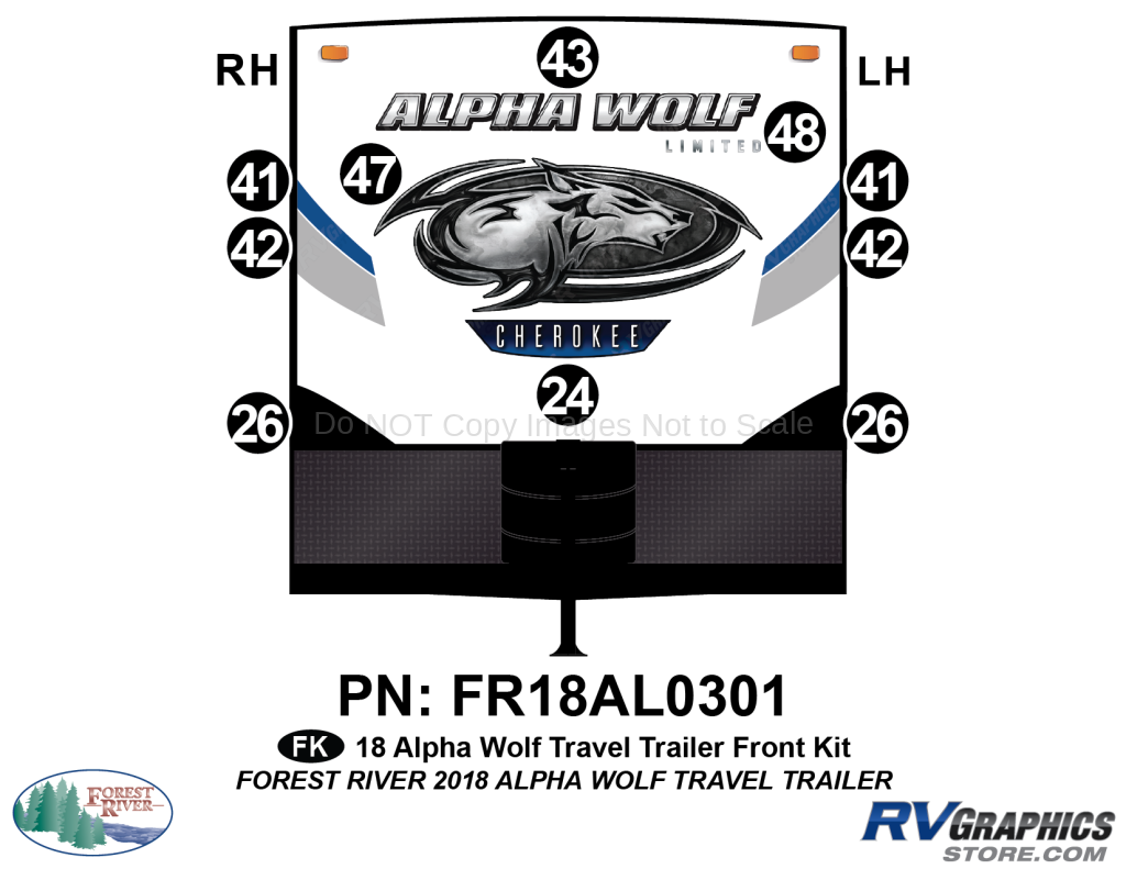 10 Piece 2018 Alpha Wolf Travel Trailer Front Graphics Kit