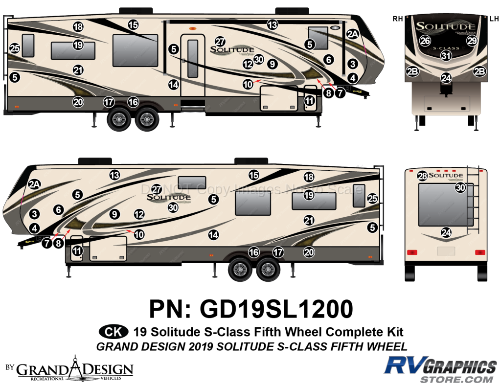 59 Piece 2019 Solitude S-Class Fifth Wheel Complete Graphics Kit