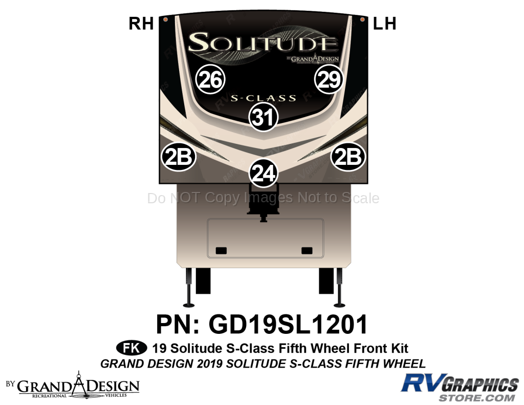 6 Piece 2019 Solitude S-Class Fifth Wheel Front Graphics Kit