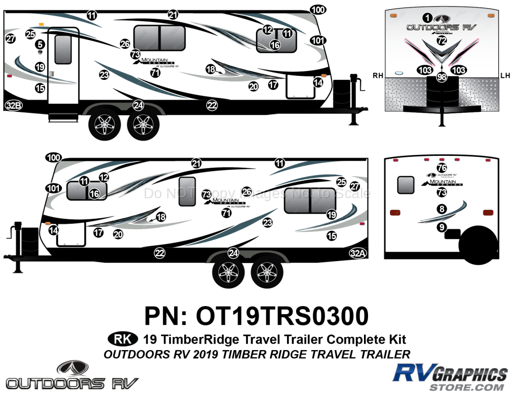 54 Piece 2019 Timber Ridge Mountain Series Travel Trailer Complete Graphics Kit