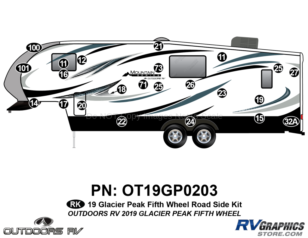 23 Piece 2019 Glacier Peak Mountain Series Fifth Wheel Roadside Graphics Kit