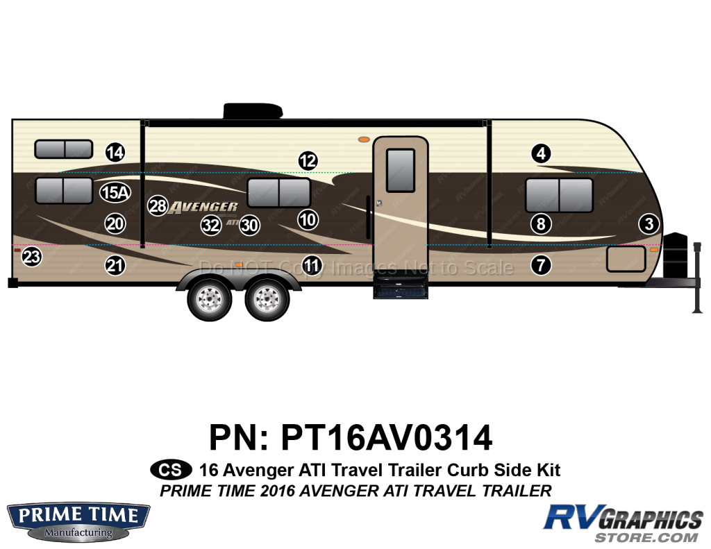 15 Piece 2016 Avenger ATI Travel Trailer Curbside Graphics Kit