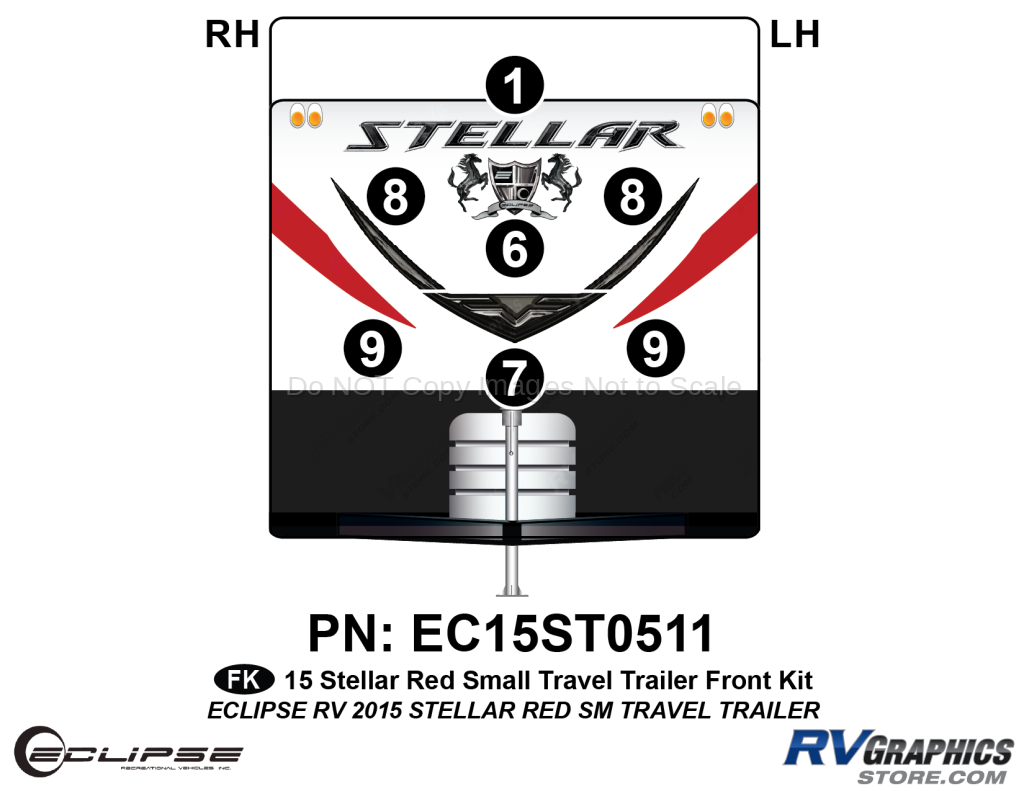 7 Piece 2015 Stellar Small Travel Trailer Red Version Front Graphics Kit
