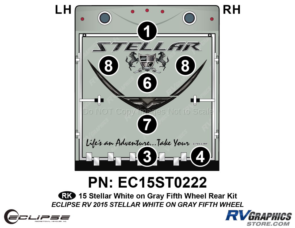 7 Piece 2015 Stellar Fifth Wheel White on Gray Version Rear Graphics Kit