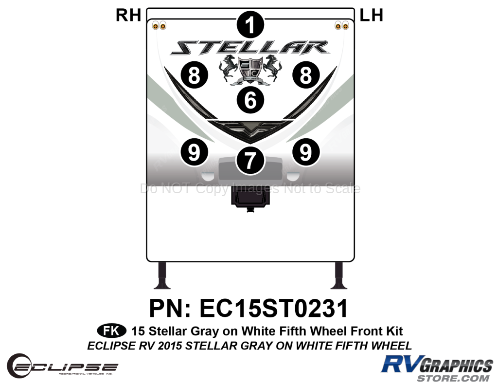7 Piece 2015 Stellar Fifth Wheel Gray on White Version Front Graphics Kit