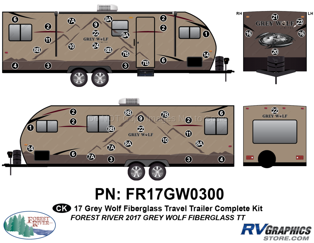 49 Piece 2017 Grey Wolf Travel Trailer Fiberglass Wall Complete Graphics Kit