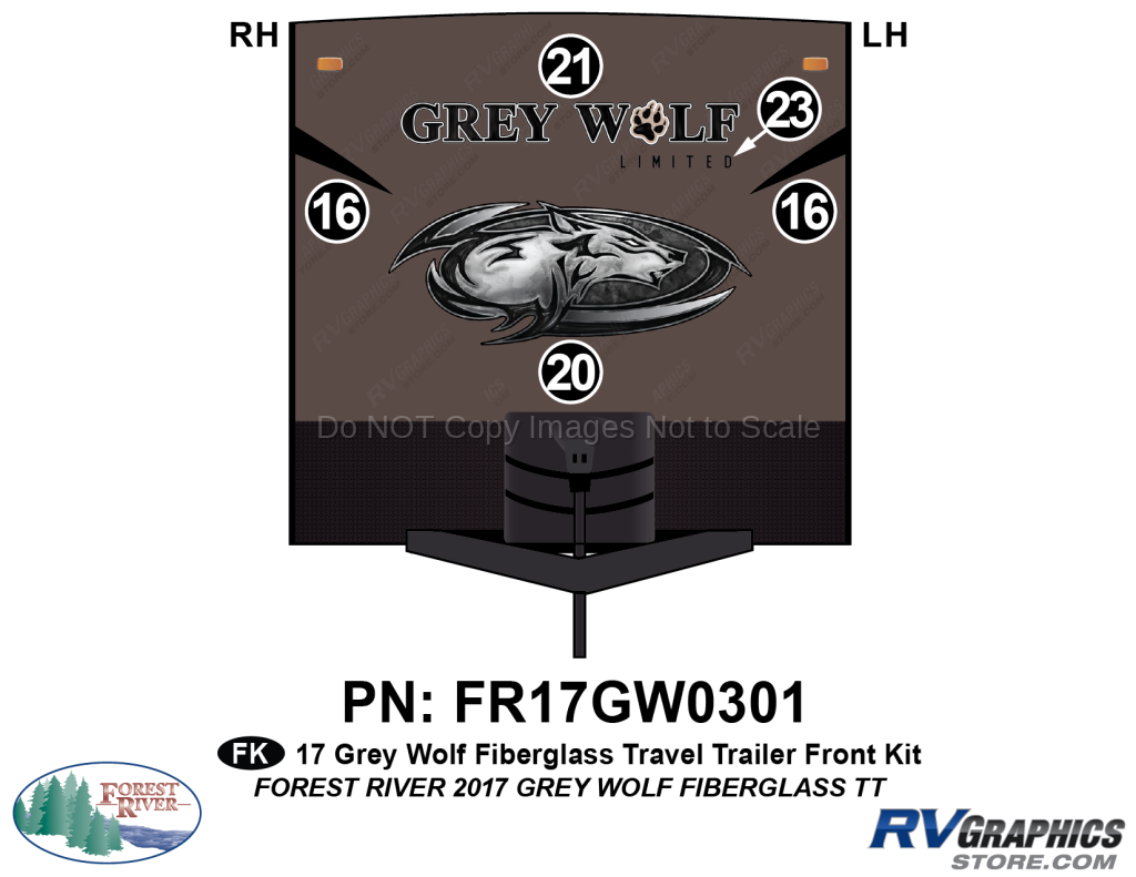 5 Piece 2017 Grey Wolf Travel Trailer Fiberglass Wall Front Graphics Kit