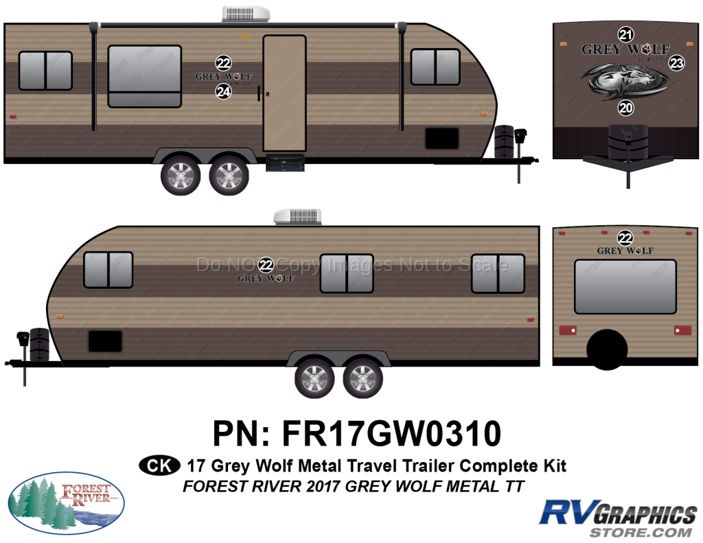7 Piece 2017 Grey Wolf Travel Trailer Metal Wall Complete Graphics Kit