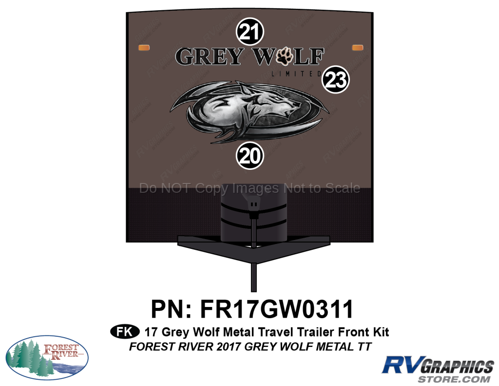 3 Piece 2017 Grey Wolf Travel Trailer Metal Wall Front Graphics Kit