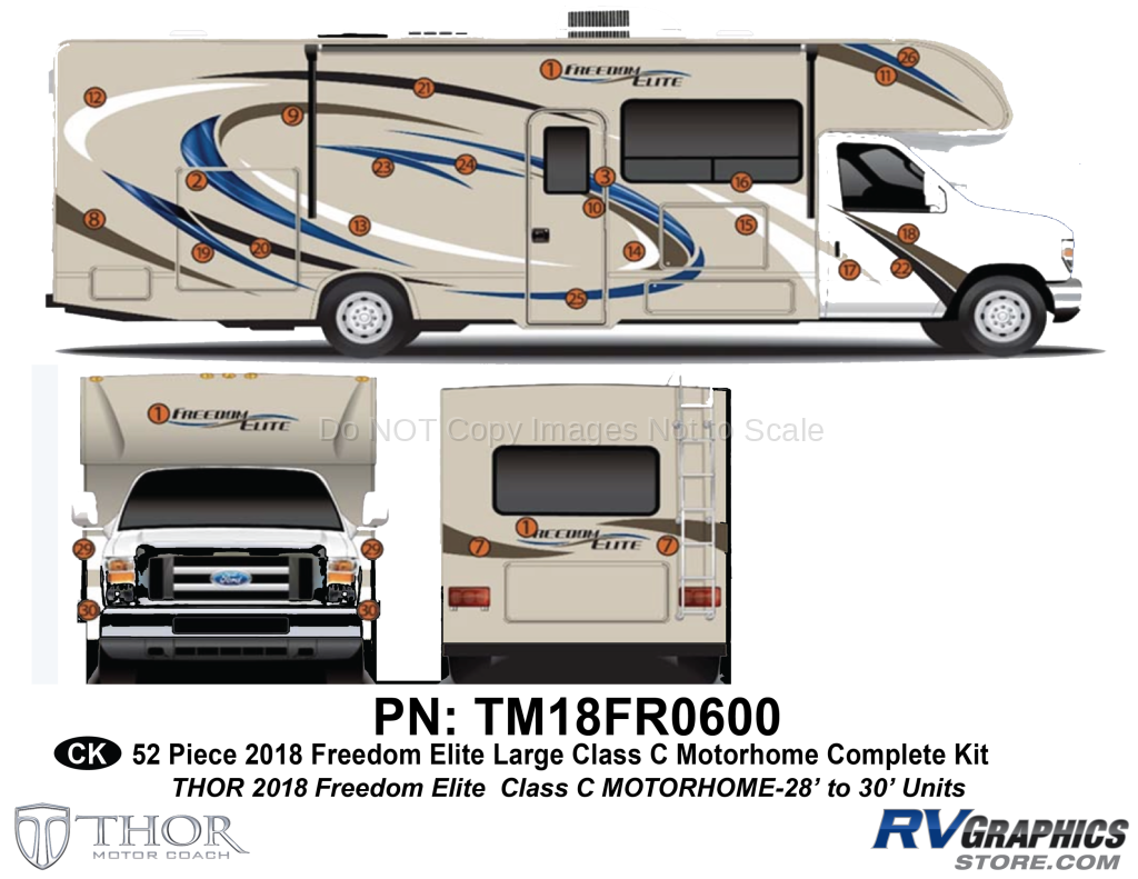 52 Piece 2018 Freedom Elite Lg Motorhome Complete Graphics Kit