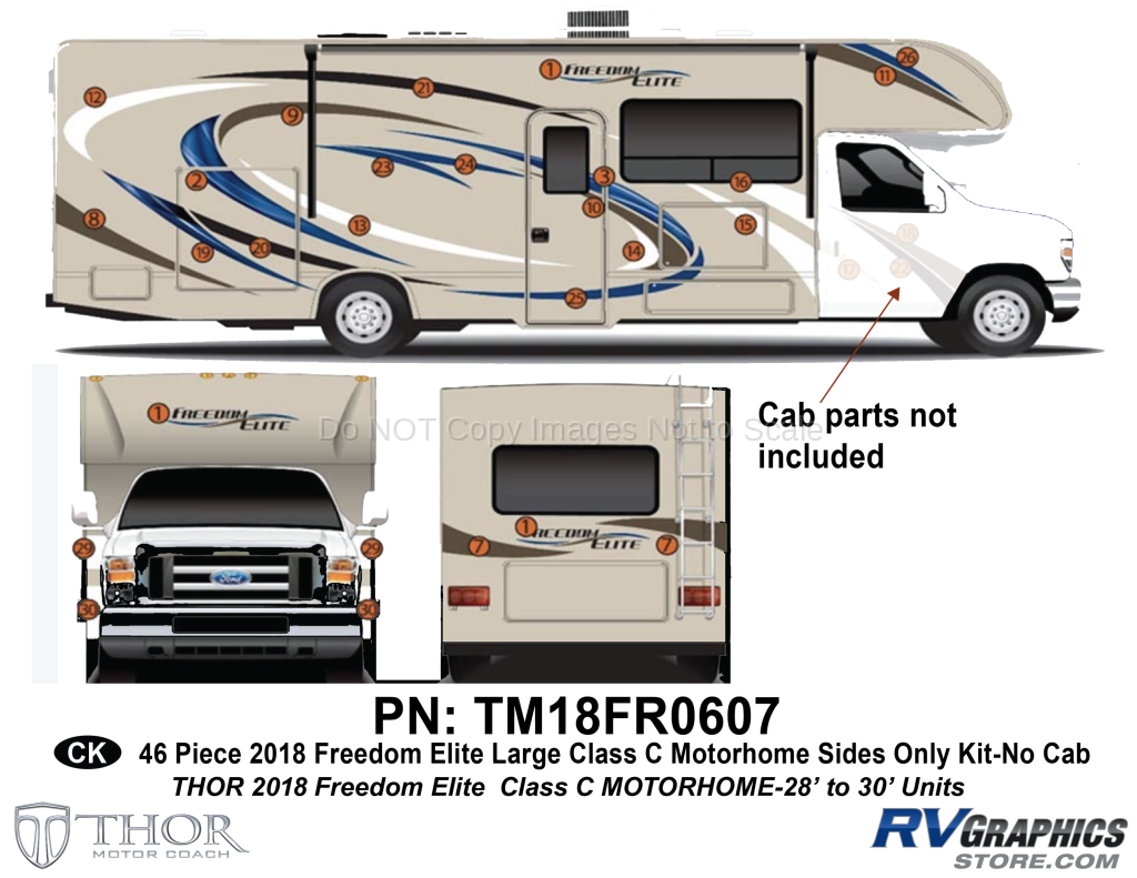 46 Piece 2018 Freedom Elite Lg Motorhome SIDES ONLY Graphics Kit-No Cab Pieces