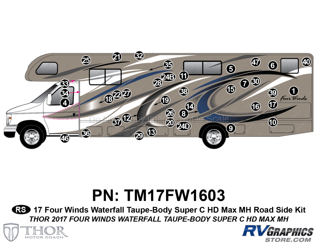 43 Piece 2017 Four Winds Motorhome Blue on Taupe Wall Roadside Graphics Kit