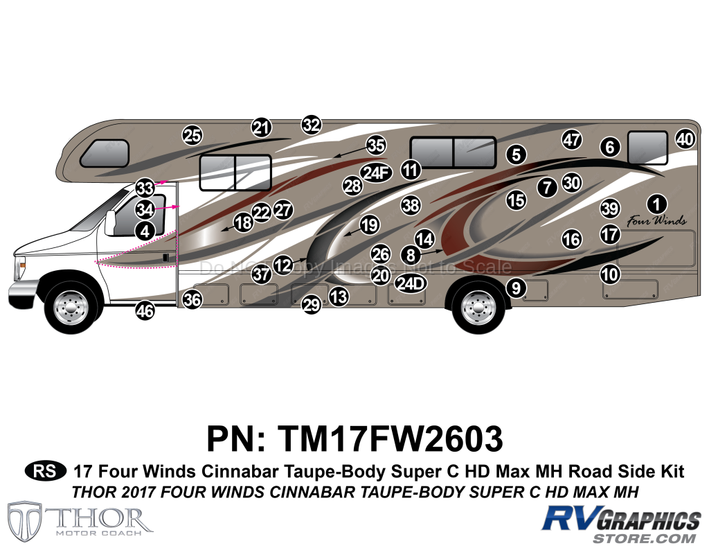43 Piece 2017 Four Winds Motorhome Red on Taupe Wall Roadside Graphics Kit
