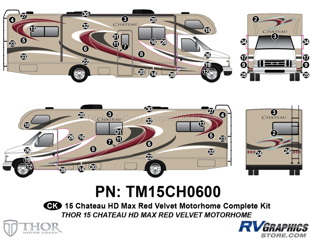 64 Piece 2015 Chateau Motorhome Red Velvet Complete Graphics Kit