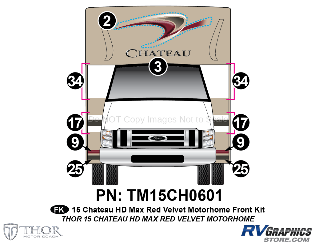 10 Piece 2015 Chateau Motorhome Red Velvet Front Graphics Kit