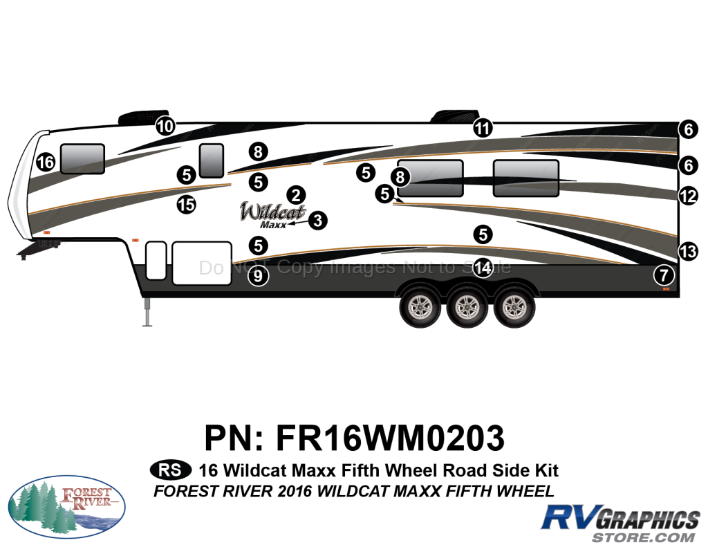 16 Piece 2016 Wildcat MAXX Fifth Wheel Roadside Graphics Kit